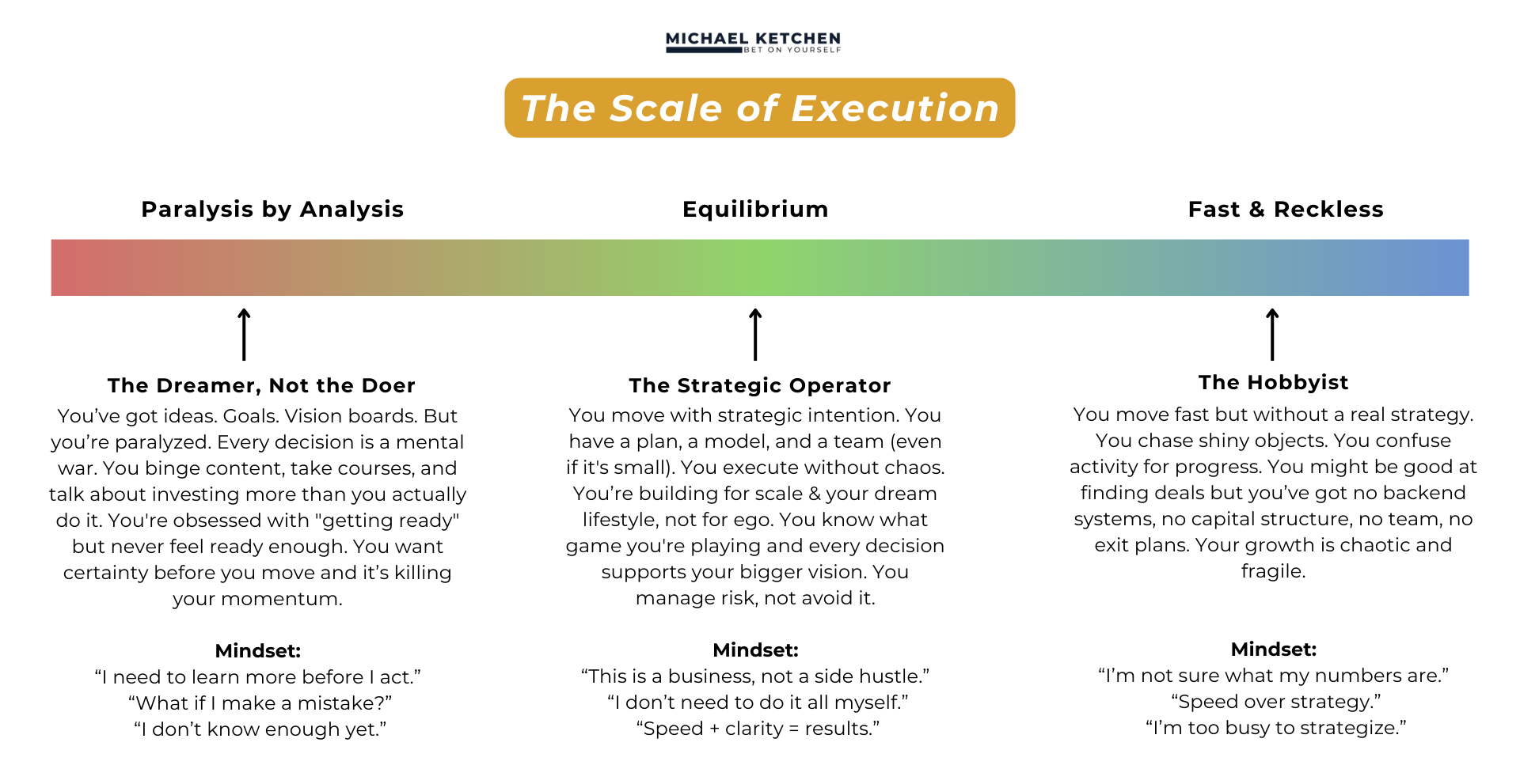 You move fast but without a real strategy. You chase shiny objects. You confuse activity for progress. You might be good at finding deals but you’ve got no backend systems, no capital structure, no team, no exit plans. Your growth is chaotic and fragile.